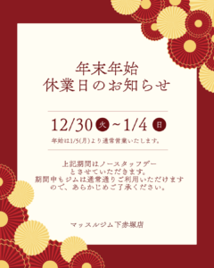 来年も マッスルジム下赤塚店 をどうぞよろしくお願いいたします。